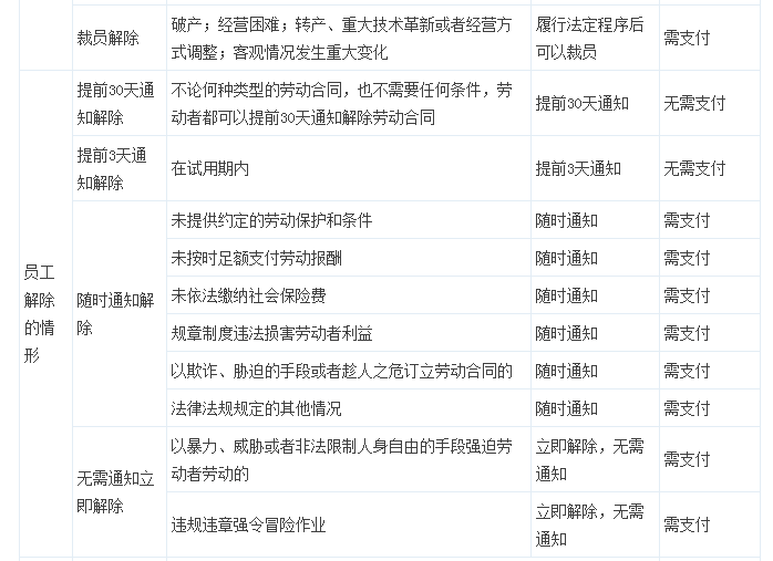 最全的勞動(dòng)合同解除及賠償一覽表